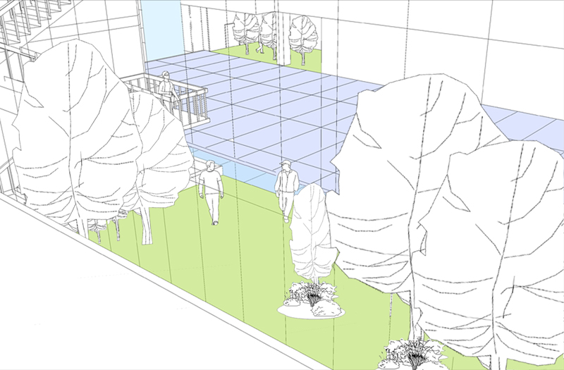 刘弘认为,目前国内的大学校园建筑大多方正而且封闭,空间体验单一,过于中规中矩。为了给大学生们提供更加丰富、有趣味的学习、交流空间,刘弘在设计中运用了传统的“叠石手法”,将不同的功能块叠拼在一起,形成空间上的内外交错。并引入多种植物,使室外、半室外和室内多层次的交流空间相互呼应,构成建筑独特的内外景象。
