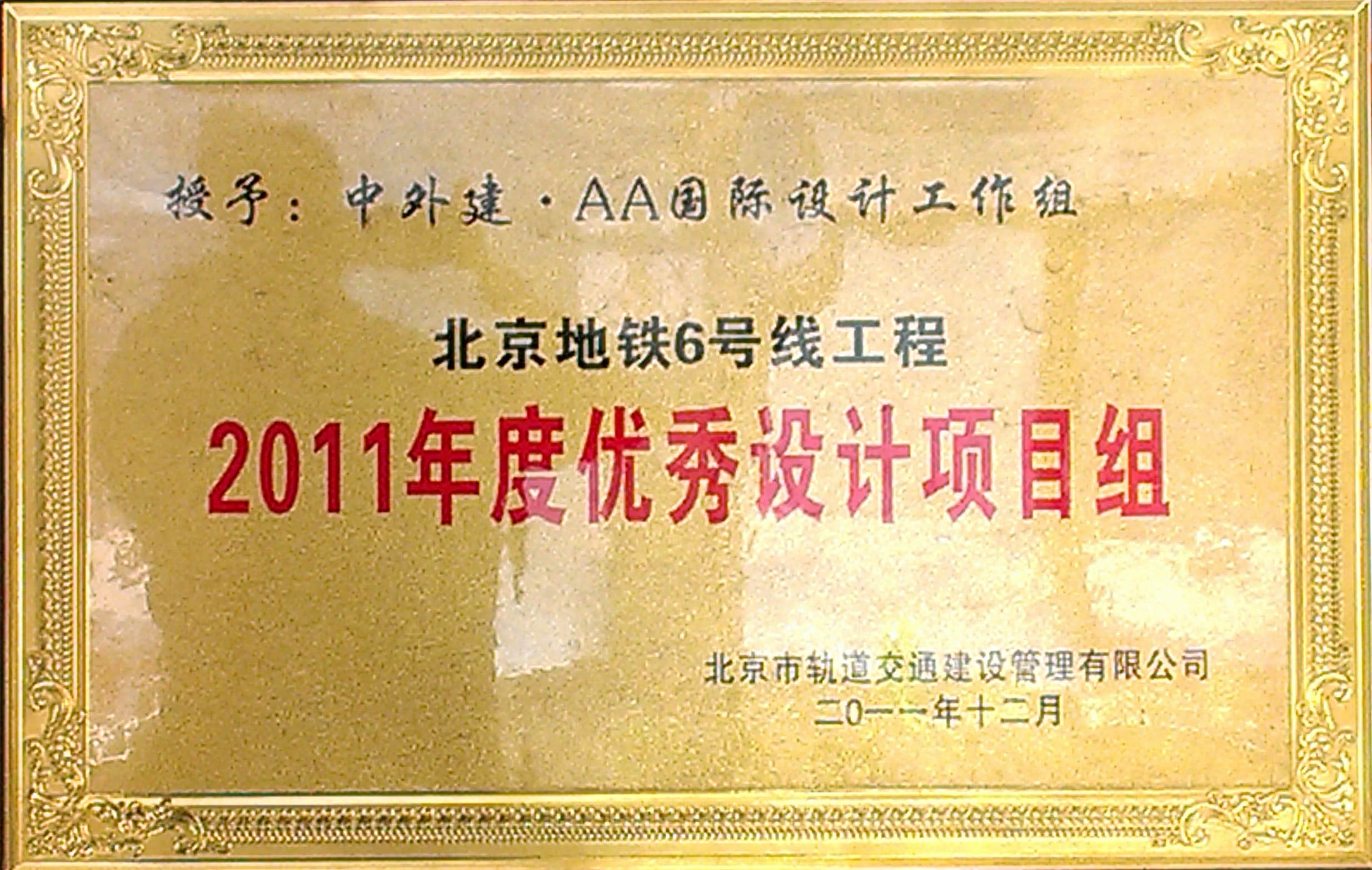 恭喜我司北京地铁6号线工程室内设计项目组,被建设单位北京市轨道交通建设管理有限公司授予“2011年度优秀设计项目组”称号。